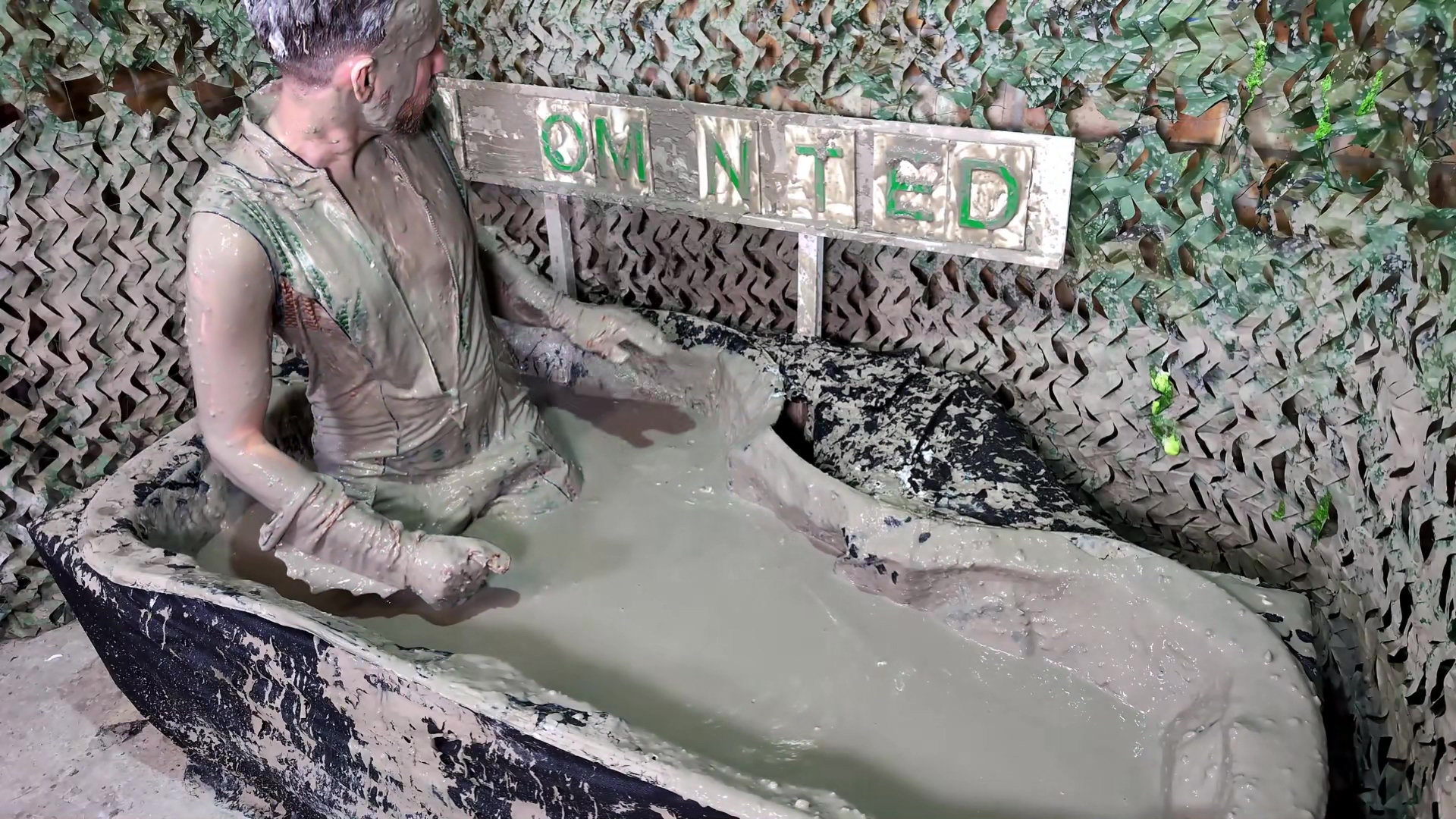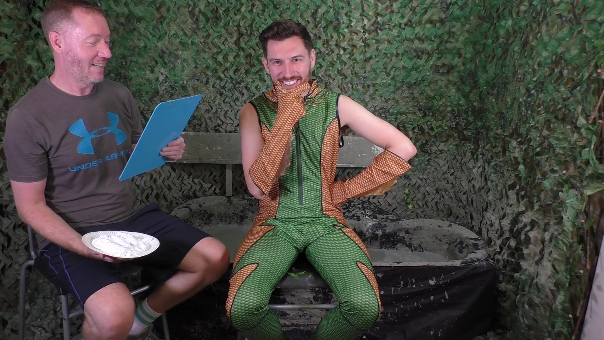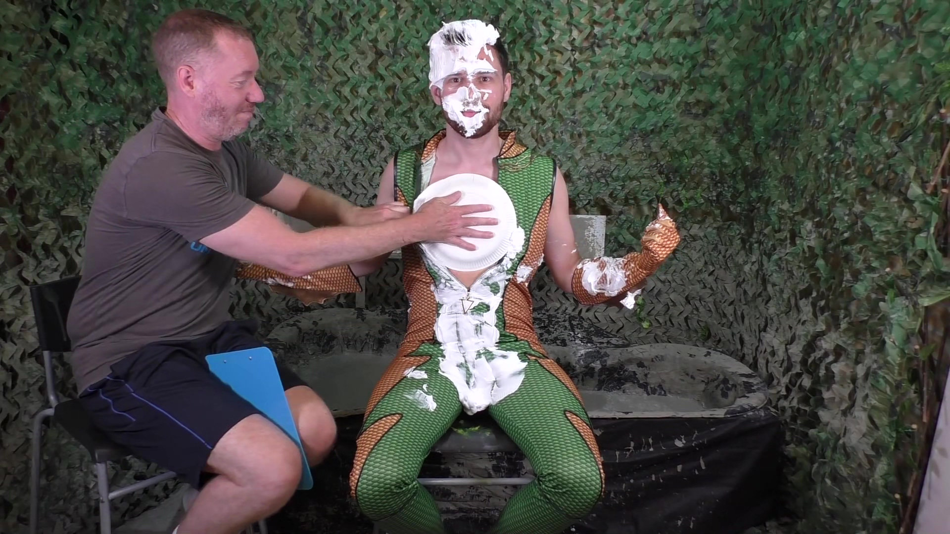 It’s The Deep (or is it Jamesinmess?) taking on the letter collecting swamp game this time around. He has a chance to reduce the length of the word he will need to guess from the swamp by answering 3 questions. Each correct answer will mean a shorter word, but each wrong one means a pie to the face. He gets 3 pies. Sliding into the swamp, he now has an 8 letter word to guess as he pulls out the letters and arranges them to spell out the answer.